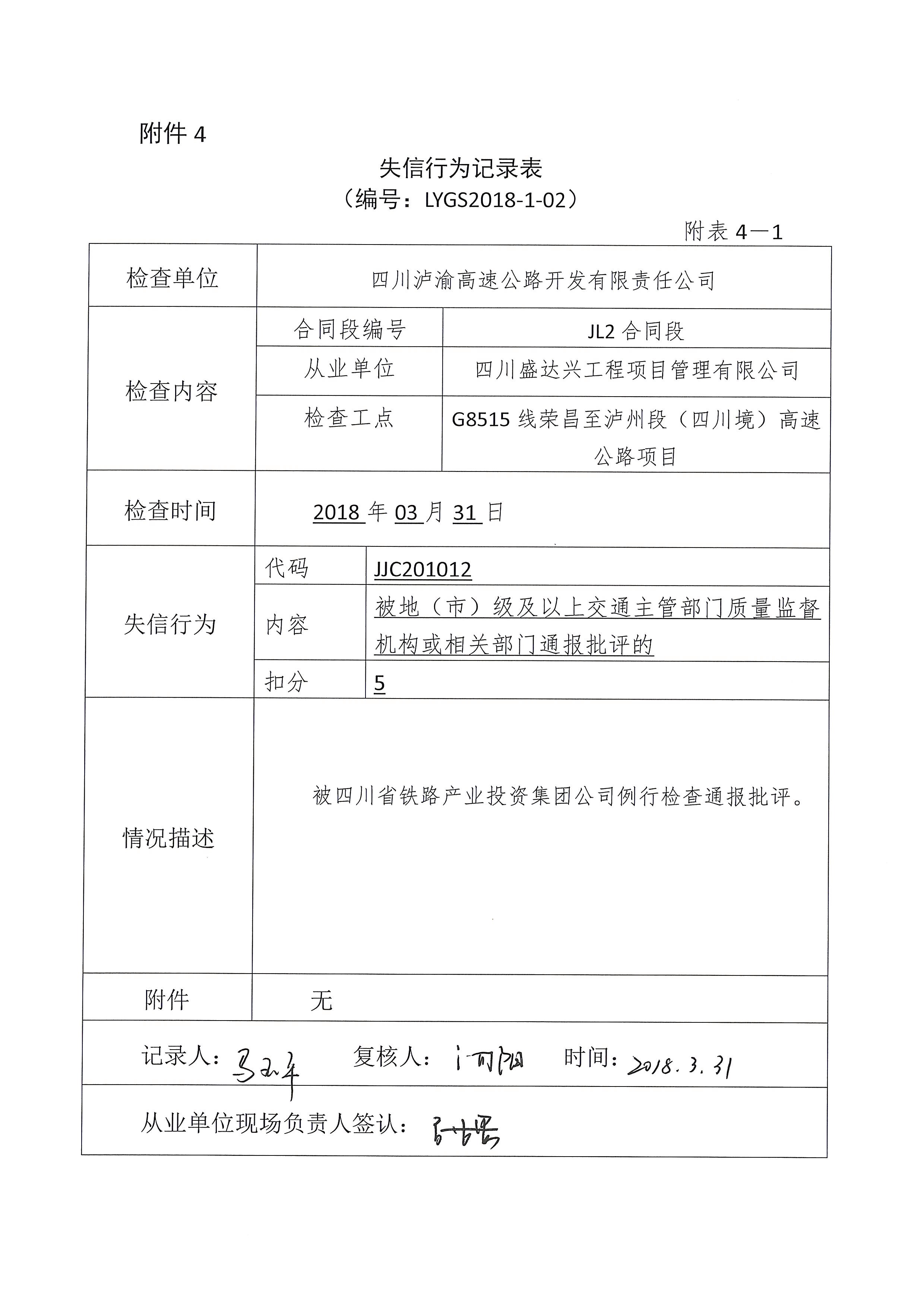 四川盛达兴工程项目管理有限公司失信行为记录表